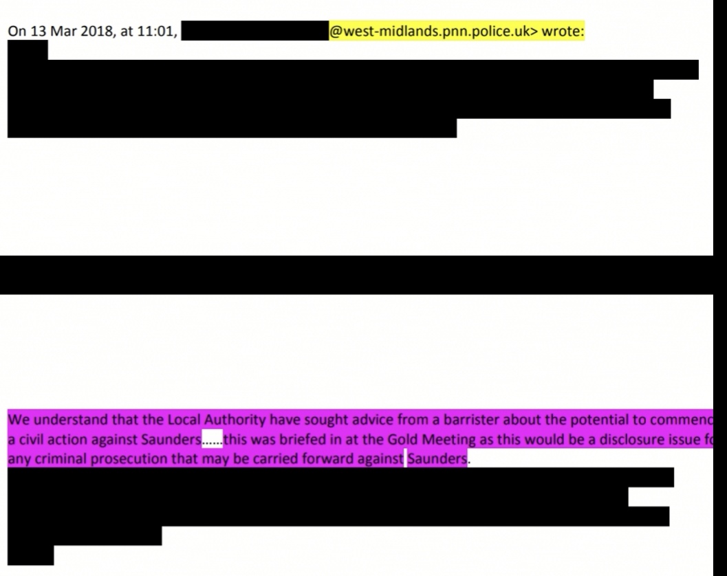 Some of that history has now come to light after Saunders lodged a Subject Access Request (SAR) with WMP under data protection laws, specifically asking for all correspondence it held to or from the council leader concerning Saunders.