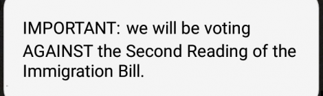 At around 7pm tonight, a text message with an ‘IMPORTANT’ header was sent to all Labour MPs from the Labour leader’s office, informing them that the party would be voting against the Tories’ Immigration Bill at its ‘Second Reading’ this evening: This followed a day of anger among some Labour activists that Labour was was … Continue reading Why Labour wasn’t whipping MPs on immigration bill – and why it then did