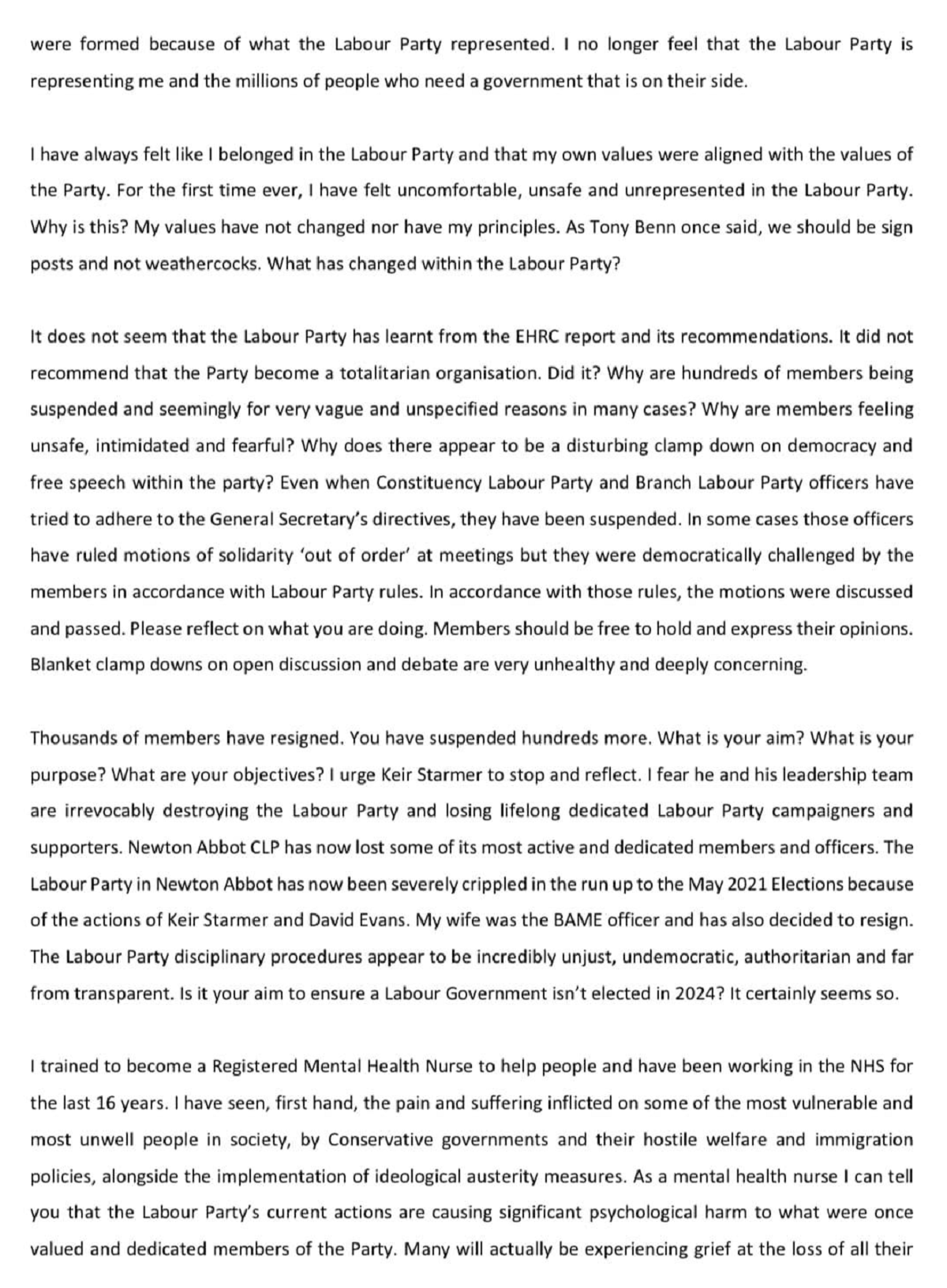 9. Nothing but the simple truth in his letter. The cult of new Labour 2.0 is NOT the Labour party it’s definitely NOT a left party any more and certainly with this hatred of anything socialist anything to do with that so what is it? Tory Lite…