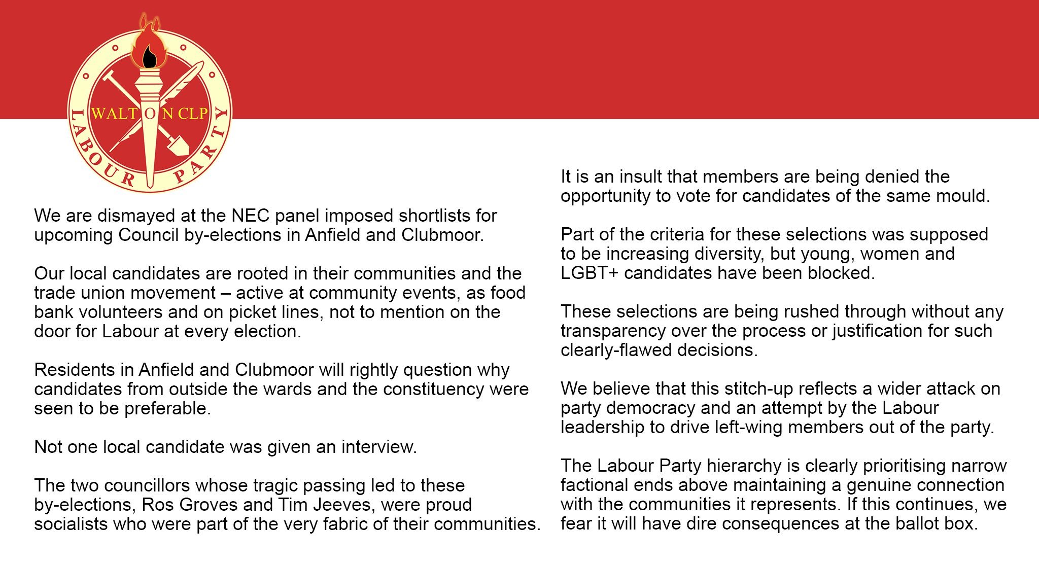 Look up Liverpool Walton CLP’s statement on Twitter.