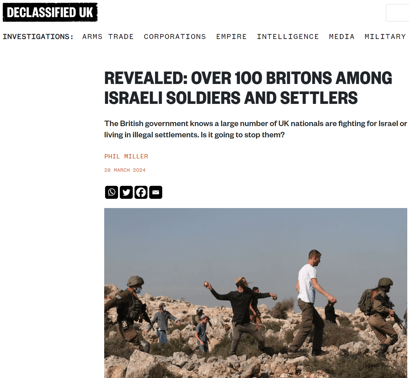 There have been zero prosecutions of British citizens for participating in the genocide and war crimes of the foreign power Israel, despite abundant evidence being submitted by international law experts to the Met detailing actual war crimes committed by ten of them, and the unequivocal obligation of the UK under international law to investigate and act.